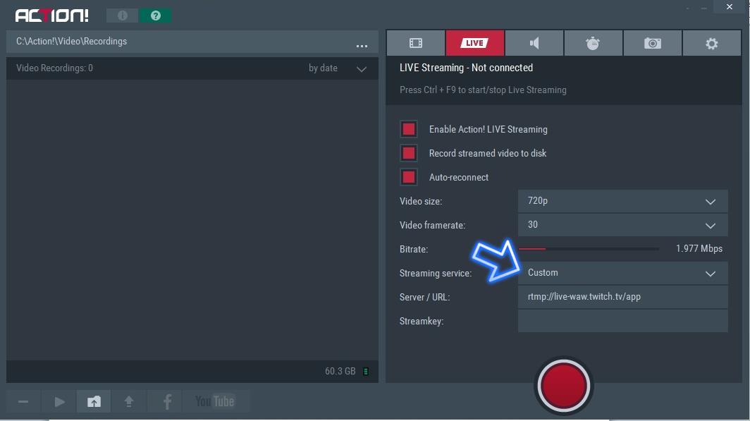 Mirillis Action! – konfiguracja streamu