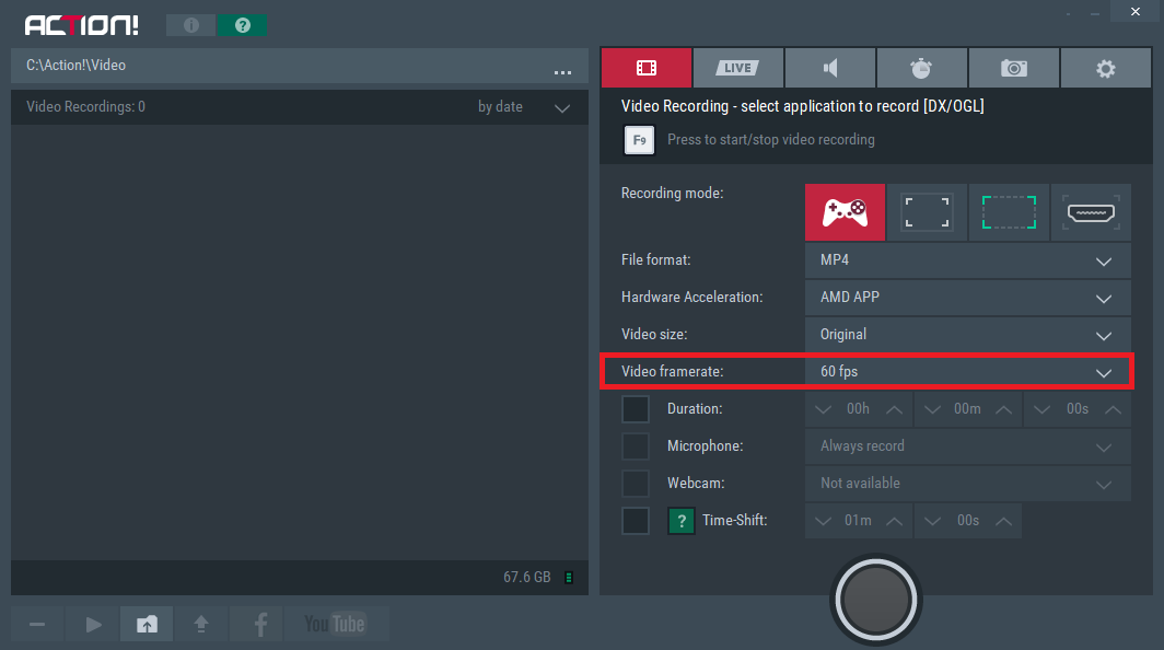 Podczas nagrywania w formacie pliku MP4 można ustawić bitrate. Jeśli masz wystarczająco dobry komputer, to nie powinieneś mieć większych problemów z tym. W przeciwnym razie spróbuj obniżyć te ustawienia, do tego stopnia gdy FPS będzie na pożądanym poziomie.