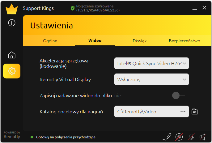 7. Możesz wybrać sprzętową akcelerację używaną do kodowania wideo i zezwolić na nagrywanie każdej sesji zdalnej: