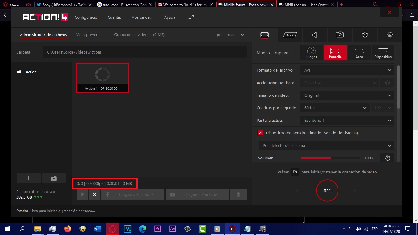 Re: Mirillis Action! me graba un segundo de la pantalla